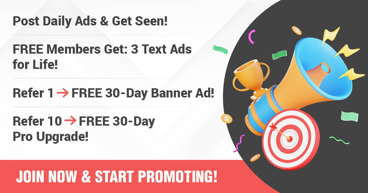 - 🎯 Refer 1 member: Get a free banner ad for 30 days! (Every time!)